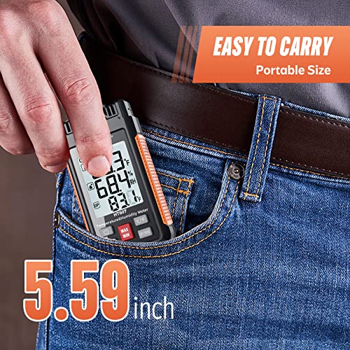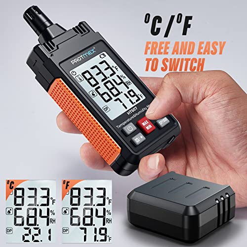 Protmex HT607 Temperature Humidity Meter High Precision Digital Hygrometer with Ambient, Relative Humidity, Dew Point, Wet Bulb Thermometer, Min\/Max Hold, LCD Backlight with Cover Protector