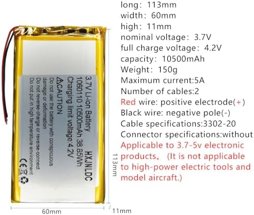 HXJNLDC DC 3.7V 10500mah 1060110 Rechargeable Lithium Polymer Replacement Battery for DIY 3.7-5V Electronic Products with Built-in 2-Wire Battery Replacement, Mobile Energy Storage Power Supply.