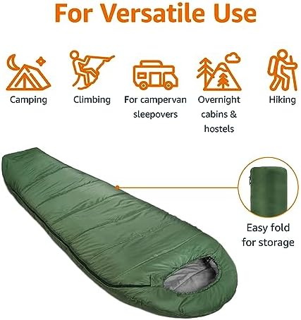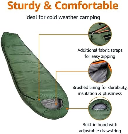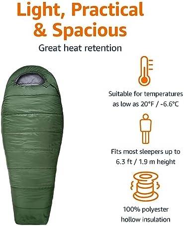 Amazon Basics 20°F Cold Weather Mummy Sleeping Bag, 82 Inches x 33 Inches, Olive Green