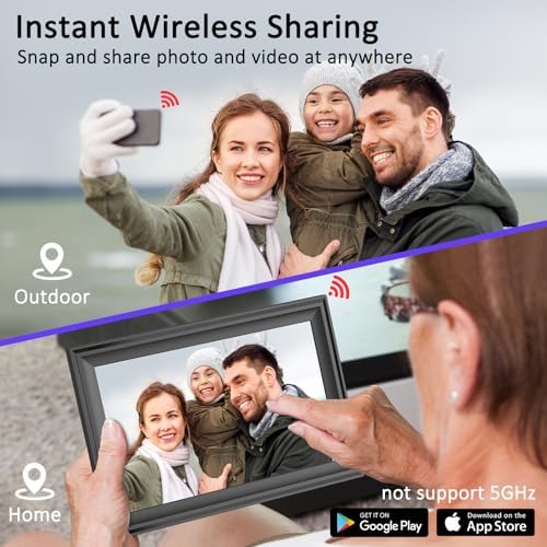 Digital Picture Frame, 10.1 Inch WiFi Photo Frame Electronic, IPS HD Display Touch Screen,16GB Storage, Wall Mountable, Auto-Rotate, Share Photos and Video via Uhale App