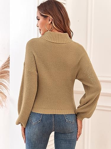 ZAFUL Women's Cropped Turtleneck Sweater Lantern Sleeve Ribbed Knit Pullover Sweater Jumper
