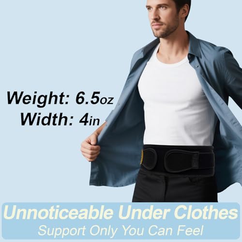 Thin & Lightweight Back Brace for Lower Back Pain Relief \u2013 Slim, Breathable Back Support Brace for Sciatica, Herniated Disc \u2013 Adjustable Lumbar Support Belt for Men & Women, All Day