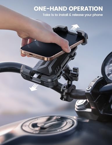 Lamicall Motorcycle Phone Mount Holder - [Dual Vibration Dampener] [Metal Adjustment Arm] Motorcycle Cell Phone Holder, Bike Handlebar Phone Mount, for iPhone 16\/15\/ 14\/13 Pro Max, 4.7-6.7" Pho
