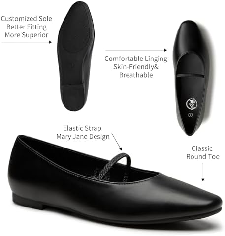 Trary Mary Jane Ballet Flats for Women - Comfortable Closed Toe Shoes With Strap