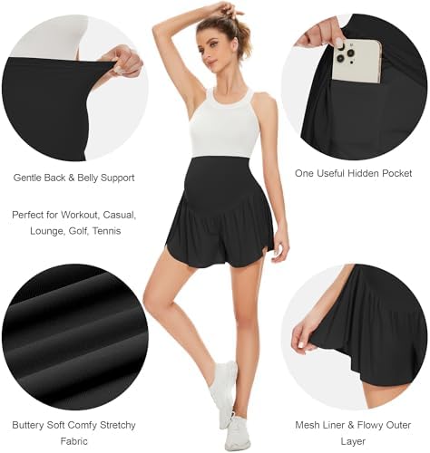 POSHGLAM Women's Maternity Flowy Shorts Over Belly Workout Causal Comfy Stretchy Summer Shorts