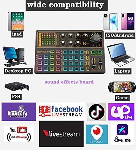 K300 Sound Effects Board Set, LED Light Voice Changer Sound Card with Multiple Sound Effects - Podcast Equipment Bundle for Live Streaming\/Laptop Computer Vlog\/Living Broadcast YouTube or TikTok