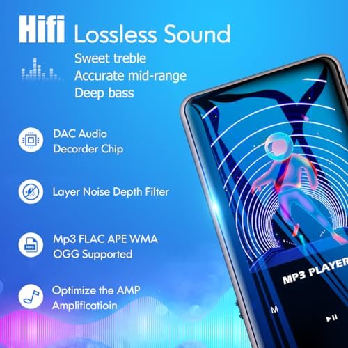 96GB Mp3 Player with Bluetooth 5.0 - Aiworth Portable Digital Lossless Music MP3 MP4 Player for Kids with FM Radio HD Speaker for Sports Running Super Light Metal Shell Touch Buttons