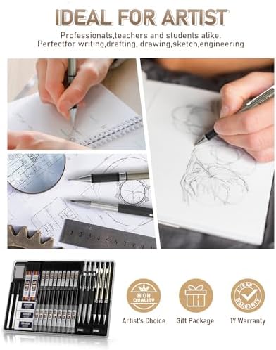 Nicpro 35PCS Art Mechanical Pencil Set, 3 PCS Metal Drafting Pencil 0.5 mm & 0.7 mm & 0.9 mm & 3 PCS 2mm Lead Holder (6B 4B 2B HB 2H 4H Colors) For Sketching Drawing With 20 Tube Lead Refi