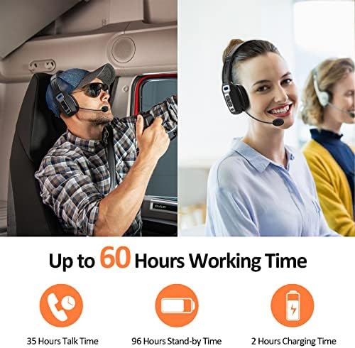 LEVN Bluetooth Headset with Microphone, Trucker Bluetooth Headset with AI Noise Cancelling & Mute Button, Wireless On-Ear Headphones 60 Hrs Working Time, for Trucker Home Office Remote Work Zoom