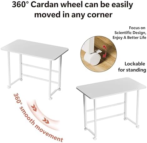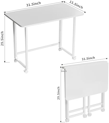Serxis Folding Desk,Not Require Assembly,Small Foldable Desk 31.5" for Small Spaces,Space Saving Computer Table Writing Workstation for Home Office,White