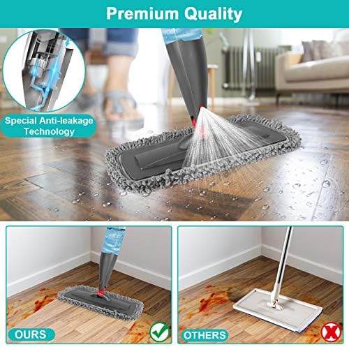 Spray Mop for Floor Cleaning with 3pcs Washable Pads - Wet Dry Microfiber Mop with 800 ml Refillable Bottle for Kitchen Wood Floor Hardwood Laminate Ceramic Tiles Floors Dust Cleaning