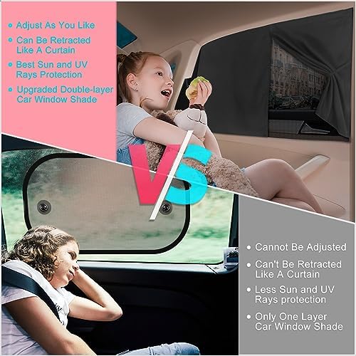 Car Window Shades, 2 PCS Magnetic Double Layer Auto Sun Shade for Side Windows Privacy Full Covers\/Half Shade Options Back Car Window Curtains for Baby Protection