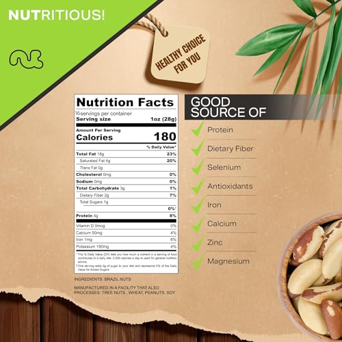 NUT CRAVINGS - Raw Brazil Nuts, Unsalted, No Shell, Whole, (16oz - 1 LB) Bulk Nuts Packed Fresh in Resealable Bag - Kosher Healthy Snack, Natural Keto Vegan