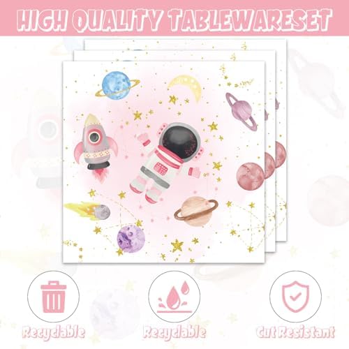 ACIYHN 40Pcs Outer Space Birthday Decorations Pink Moon Star Galaxy Planet Tableware Set Disposable Plates Napkins Serves 20 Baby Shower Two The Moon Birthday Girl Party Decorations
