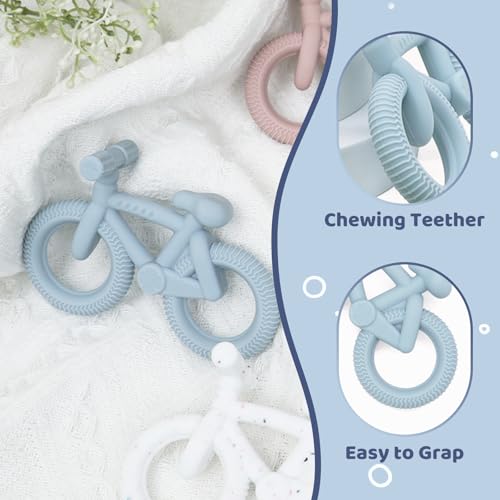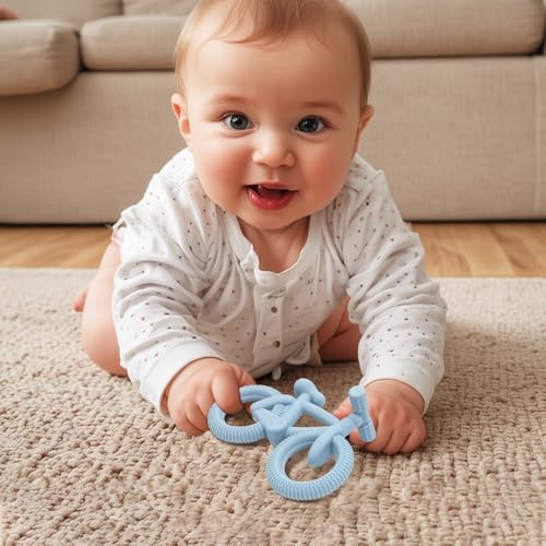 Baby Teething Chew High Chair Toys - Baby Teething Toys Silicone Teethers, Baby Table Toys, Food Grade Silicon for 6 12 18 Months (BluePink)