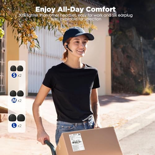 Bluetooth Headset, Wireless Bluetooth Earpiece with Dual-Mic & Noise Canceling, Single Ear Headset with Mute for Business, Remote Work, V5.3 Hand-Free headset for iOS Android Cell Phone (Black)