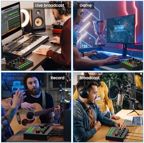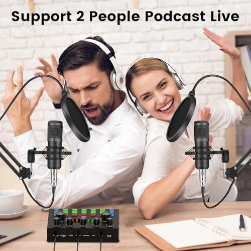 Brvomussy Podcast Equipment Bundle for 2, Audio Interface with Voice Changer Condenser Microphones for Gamer, All-in-One Audio Mixer Perfect for Live Streaming, Singing, YouTube, Gaming