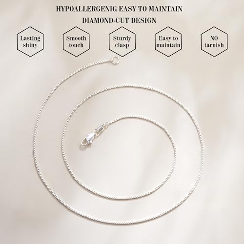 Goldegg 95 sterling silver women's chain, diamond cut millimeter box chain, lobster buckle, silver jewelry gift for women's mothers and girlfriends