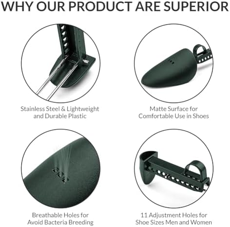 WAJJ 2 Pairs Plastic Shoe Tree Stretcher Shaper for Men Adjustable Length Shoes Boot Holder Shaper Support(Green Men)