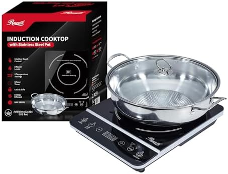 Rosewill Induction Cooker 1800 Watt, Induction Cooktop, Electric Burner with Stainless Steel Pot 10" 3.5 QT 18-8, RHAI-13001
