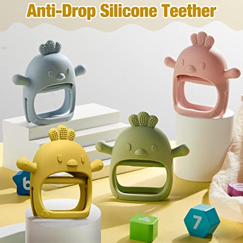 4 Packs Baby Teething Toy Silicone Teething Toys for Babies 0-6 Months Anti Dropping Wrist Hand Teethers Mitten Chick Baby Chew for Sucking Needs