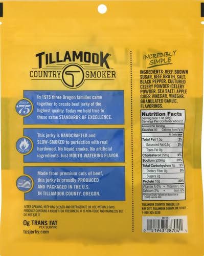 Tillamook Country Smoker Real Hardwood Smoked Beef Jerky, Sea Salt & Cracked Pepper, 2.5 Ounce