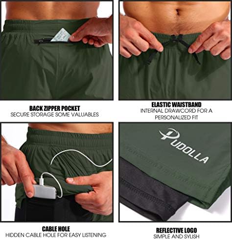 Pudolla Men\u2019s 2 in 1 Running Shorts 5"\/7" Quick Dry Gym Athletic Workout Shorts for Men with Phone Pockets
