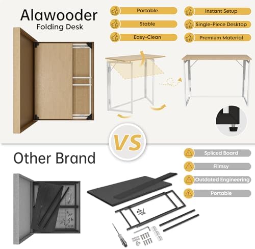 alawooder Folding Desk 30 Inch - Small Foldable Desk for Small Space Minimalist, Space Saving Collapsible Compact Desk Portable Table for Craft, Writing, Study and Work (No Assembly Required)