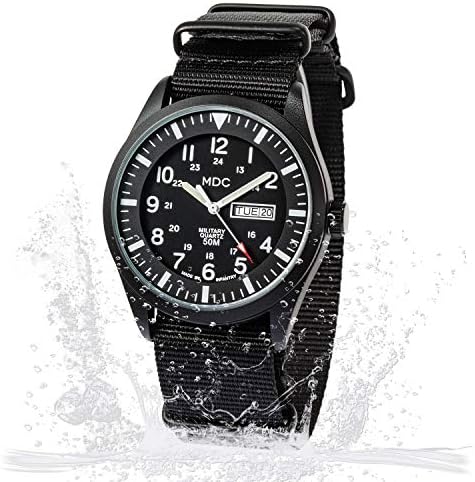 Infantry Men's Wrist Watch, Field Military Watches for Men Analog, Black Tactical Outdoor Sport Work Wristwatch, Waterproof Date Day 12\/24 Hour with Army Nylon Band