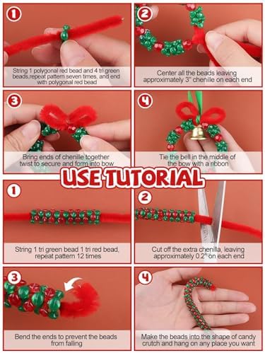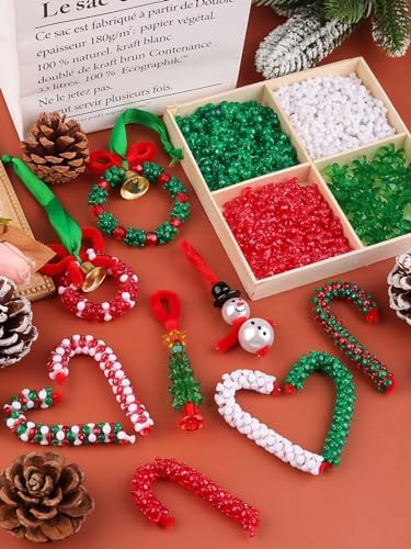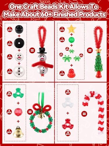 Lanstics 60 Sets Christmas Craft Beaded Ornament Kit Including 18PCS Wreath\/18PCS Candy Cane\/12PCS Snowmen\/12PCS Christmas Tree for Xmas Craft Tree Decorations Adults Holiday Party (Assembly Needed