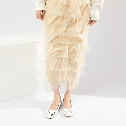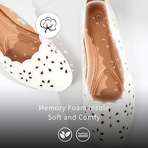 FRACORA Women's Ballet Flats Black PU Leather Dress Shoes Comfortable Round Toe Slip on Flats with Breathable Eyelets