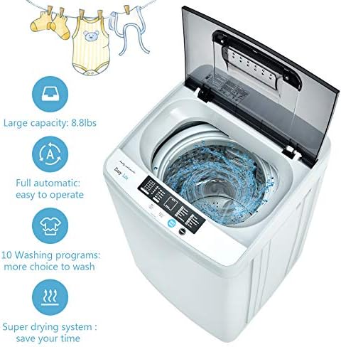 COSTWAY Portable Washing Machine, 2-in-1 Laundry Washer and Spin Combo with 10 Programs, 8.8lbs Capacity, Drain Pump and LED Display, Full Automatic Washer for Apartment, RVs, Dorm, Grey