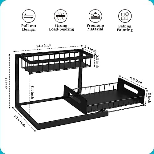 REALINN Under Sink Organizer, Pull Out Cabinet Storage 2 Tier Slide Out Sink Shelf, Kitchen Organizers and Storage, Black, 1 Pack