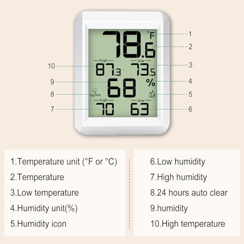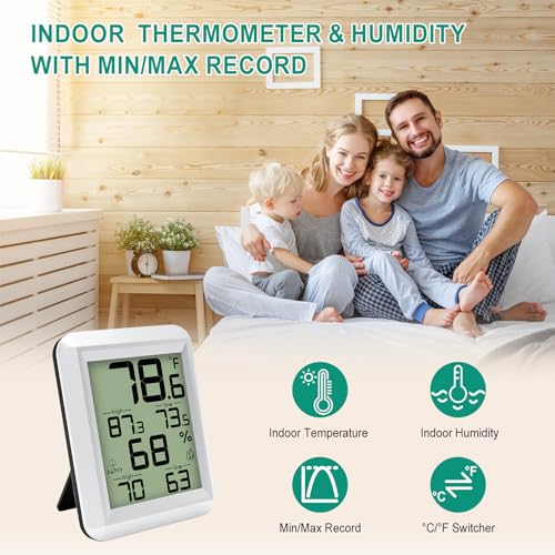 Urageuxy Digital Hygrometer Indoor Thermometer Humidity Meter with Min\/Max Record, Room Thermometer with Temperature and Humidity for Home, Office, Baby Room, Kitchen, Greenhouse
