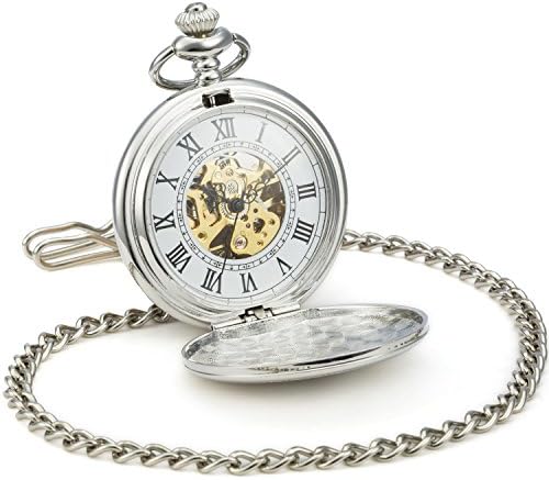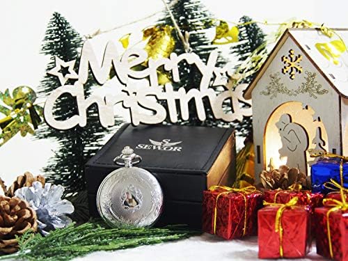 SEWOR Vintage Elegant Carving Pocket Watch Mechanical Hand Wind (Silver)