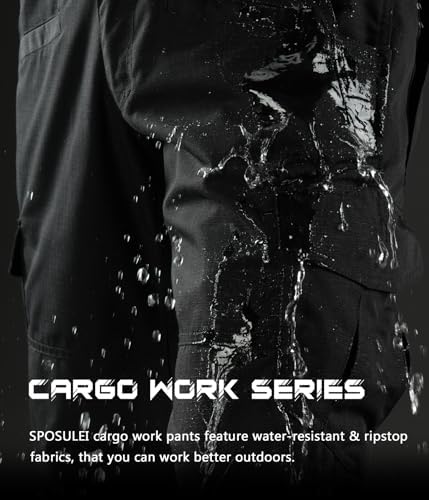 SPOSULEI Mens Tactical Pants Ripstop Cargo Work Pants with 9 Pockets Water Resistant Breathable Hiking Construction Pants