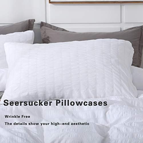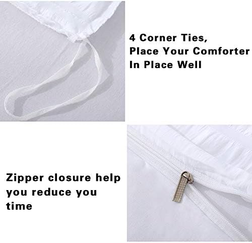 AveLom White Duvet Cover Queen (90 x 90 Inches), 3 Pieces (1 Duvet Cover + 2 Pillow Cases) Stripe Zipper Closure Corner Ties Soft Washed Microfiber Duvet Cover for Men, Women