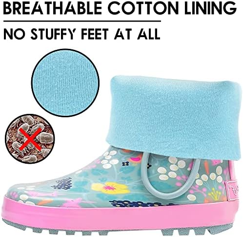 landchief Toddler Rain Boots, Kids Rain Boots Waterproof Rubber Boots for Girls and Boys with Fun Patterns and Easy-On Handles