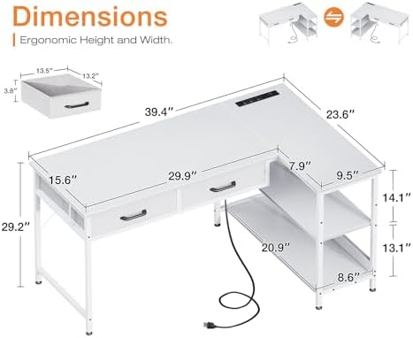 Coleshome 40 Inch L Shaped Computer Desk with 2 Drawers, Small Desk for Small Space, Home Office Table for Laptop Users, White