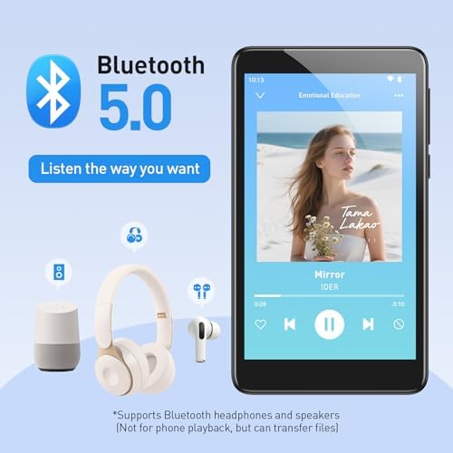 AGPTEK 96GB MP3 Player with Bluetooth and WiFi, T08X 4'' Android 14 MP4 Music Player with Spotify, Audible, APP Store, Up to 1TB, Black