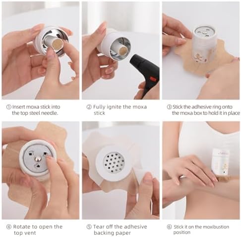Moxibustion Box Kit - 4 Paper Moxa Box 艾灸盒 (Flame-Resistant Inner Lining) with 60 Stickers, 4 Adjustable Straps & 4 Heat Shields