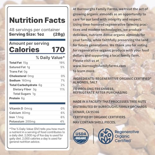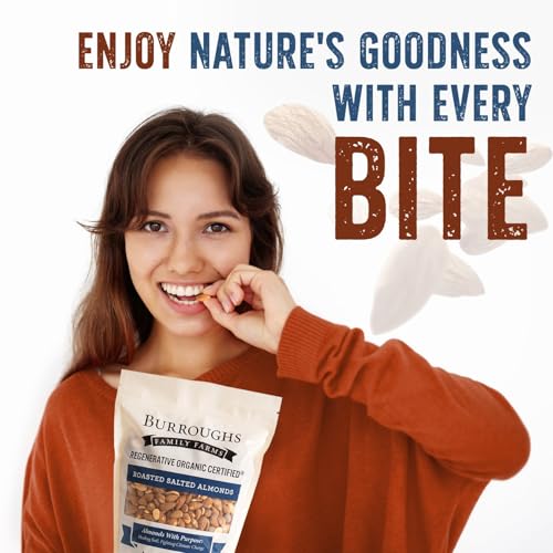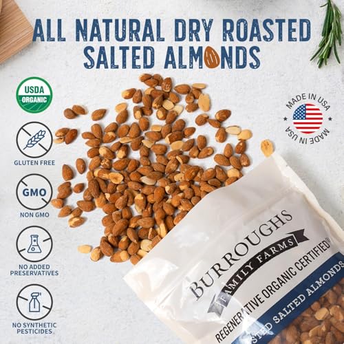 Burroughs Family Farms 3 lb Roasted Salted Almonds \u2013 USDA Organic, First Regenerative Organic Certified Almond Farm \u2013 2x the Antioxidants and Vitamin B Versus Other Almonds \u2013 Lightly Sa
