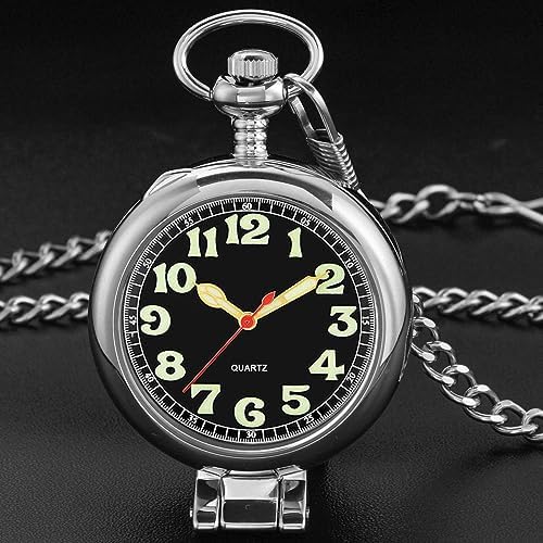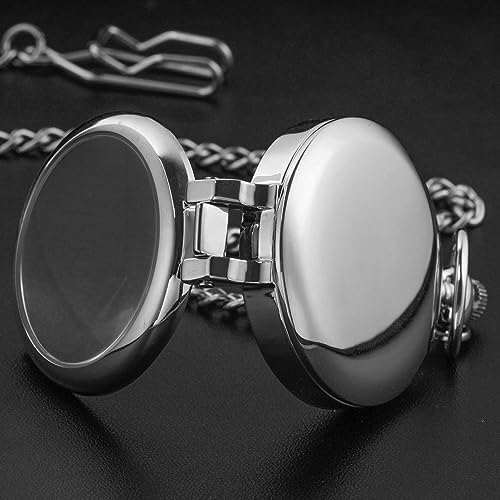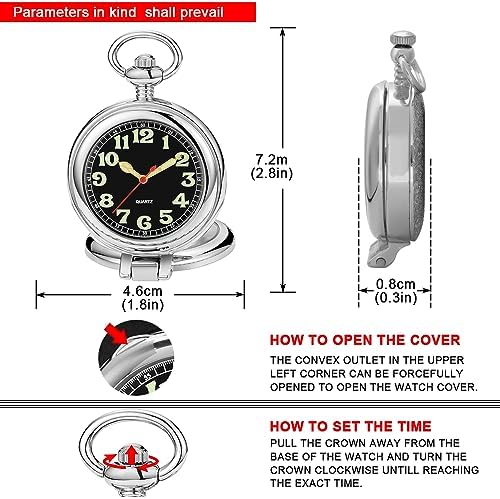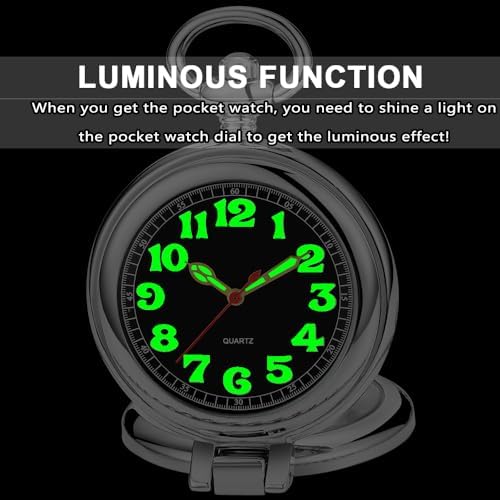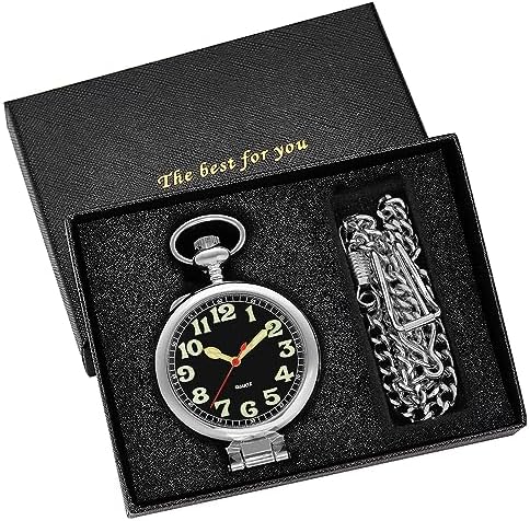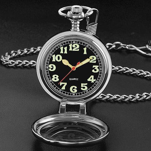 Tiong Transparent Cover Pocket Watches Quartz Arabic\/Roman Numerals Men Arabic Numerals with Chain&Box