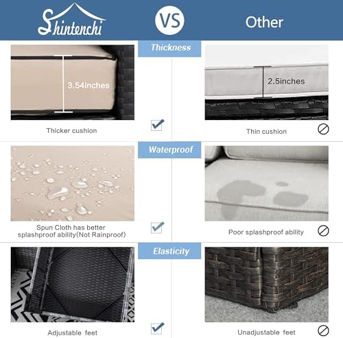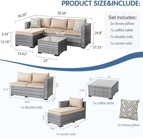 Shintenchi 3 Pieces Patio Furniture Set,All-Weather Rattan Patio Conversation Set,Outdoor Sectional Silver Wicker Patio Couch with Washable Cushions and Glass Coffee Table(Khaki)