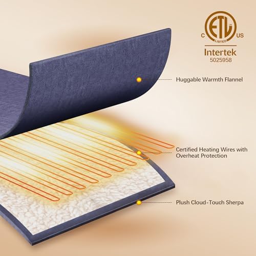 VELLUBAM electric blanket cover 7cm x 5.4cm, soft flannel lamb wool with 5 heating levels and 4-hour automatic shut-off, heating ring blanket as a grandmother's gift, machine washable (blue)