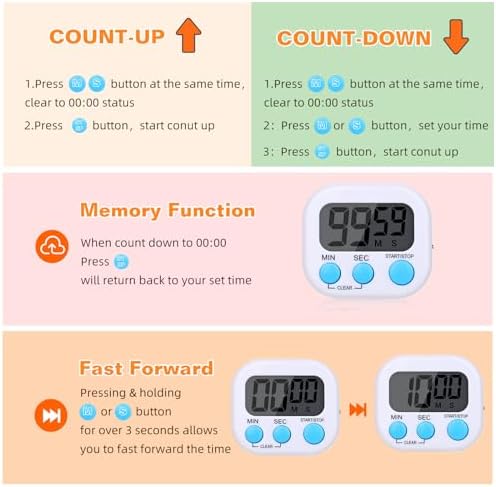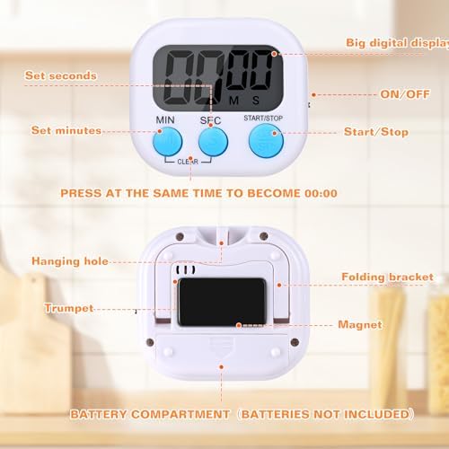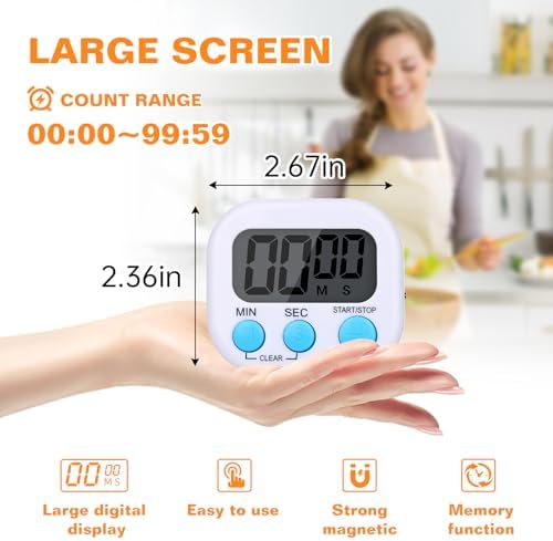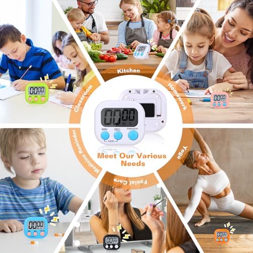 12 Pack Digital Kitchen Timers for Cooking, Small Magnetic Countdown Classroom Timers for Teachers Kids, Big Digits Loud Alarm Backing Stand Timer for Kitchen, Shower, Study, Work, Exercise Training