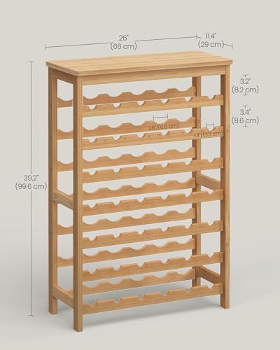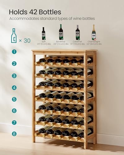 SONGMICS 42-Bottle Wine Rack Free Standing Floor, 7-Tier Display Wine Storage Shelves with Table Top, Bamboo Wobble-Free Bottle Holder for Kitchen Bar Dining Room Living Room, Natural UKWR27NL