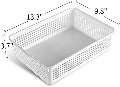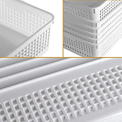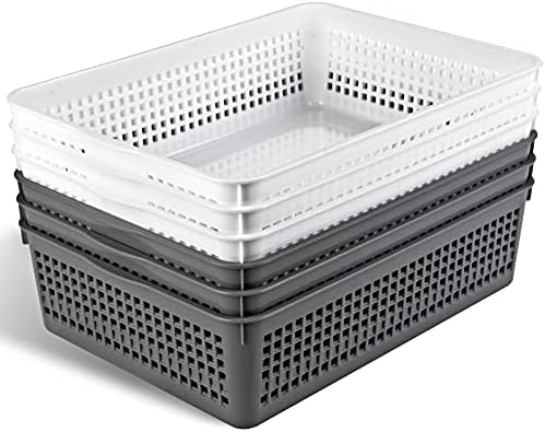 Eslite A4 Size Plastic Storage Basket,Desktop File Paper Letter Organizer Tray, 6-Packs (White+Grey)