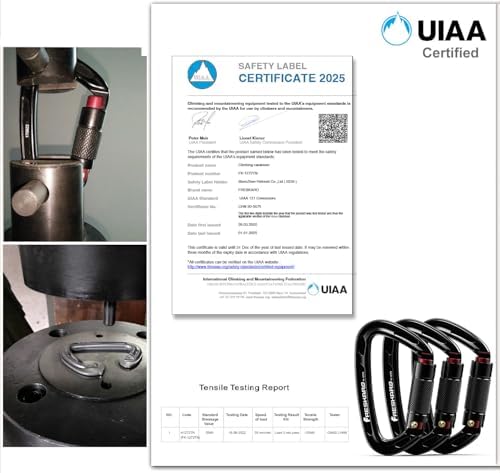 FresKaro UIAA Certified 25KN Auto Locking Climbing Carabiner Clips, Twist Lock, and Heavy Duty Carabiners for Rock Climbing, Rappelling, and Mountaineering, D Shaped 3.93 Inch, Large Size, Black