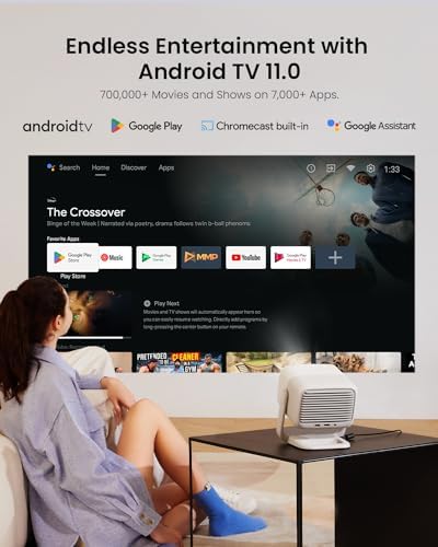 JMGO N1 Portable Projector 1080P FHD, 4K Supported, 150" MALC™ Triple Laser 3D Movie Projector for Home Theater Outdoor, Gimbal Auto Image Correction, 800 Lumens, 2x5W Dynaudio Speakers, Android T